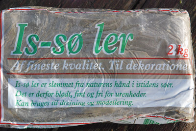 Ler er også fundet i jorden. Man kan lave mange sjove og gode ting af ler. Her på pakken står der, at det blev dannet for mange år siden under istiden.