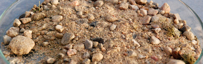 Her er jord, som vi kender det. Det er hentet fra et bed lige uden for skolebygningen, hvor der står buske og små træer.