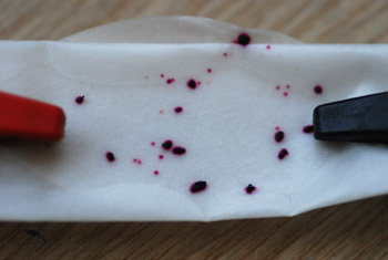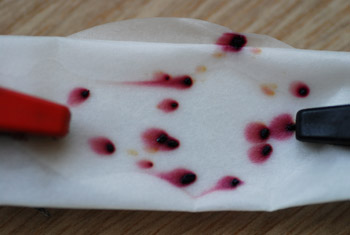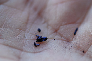 En lilla farveDet kraftigst farvestof, vi kender, er kaliumpermanganat. Et lille korn kan farve flere liter vand. Nogle studenter har sjov med at putte det i et springvand, og så er alt vandet lilla. Pas dog på, for kaliumpermanganat er giftigt. Det er kraftigt iltende, når det brændes af. Det kan bruges i krudt til at nære forbrændingen. |