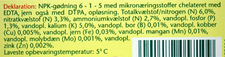 Det er kunstgødning, som indeholder grundstofferne nitrogen, fosfor og kalium. De giver henholdsvis grønne blade, god frøsætning og en stærk stængel. |