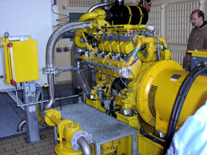 Noget af slammet rådner og danner naturgas, som bruges af en stor 8-cylindret motor til at producere elektricitet med. Strømmen bruges til at trække de mange pumper i rensningsanlægget.