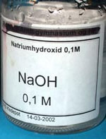 • Hæld lidt af basen natriumhydroxid på hænderne