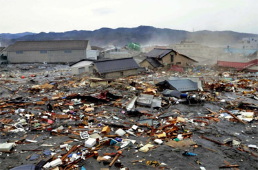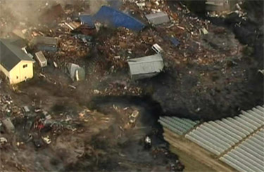 • Tsunami oversvømmer kysten mod nord-øst