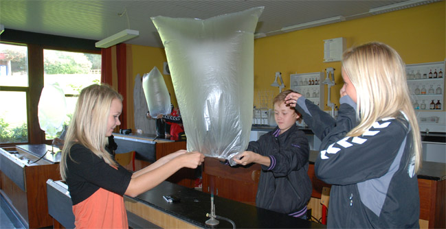 4. Hold posen ind over varmen og lad den varme luft fylde ballonen.