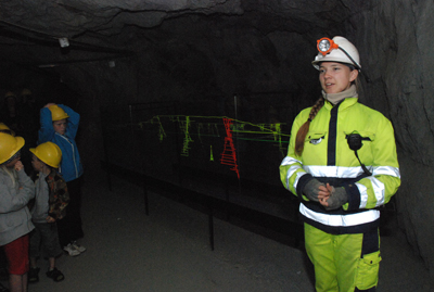 | Vi går ud i en af den lange minegange og får en fornemmelse af stilheden og mørket. | ![]() |