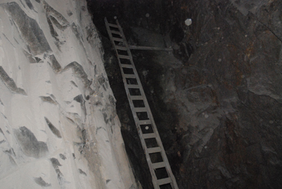 | I minens tidligste tid måtte minearbejderne kravle på lange stiger. Det var farligt, for ind imellem kunne der mangle et trin, og det var ikke nemt at se i mørke. | ![]() |